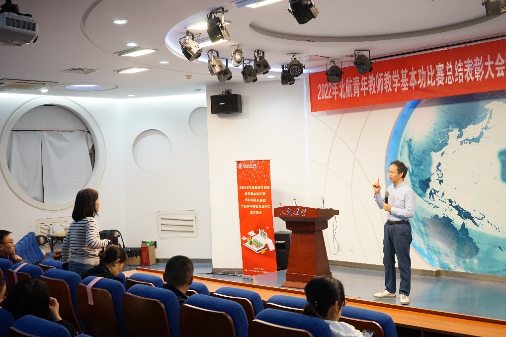 副校长吕卫锋在大会上发表讲话。他代表学校对青教赛获奖教师以及青年教师发展协会的成立表示祝贺,对青教赛在提升学校师资队伍水平和课堂教学质量方面做出的贡献给予了充分肯定。他指出,高水平的青年教师队伍是高质量教育体系的关键支撑,也是一所大学的核心竞争力。他希望北航青年教师发展协会能当好学校党委团结广大青年教师的桥梁纽带,及时充分听取广大青年教师的心声,配合学校各部门工作落实对青年教师的关心关爱,为青年教师多办事、办实事,真正把青年教师凝聚起来;同时当好青年教师沟通交流、施展才华的重要舞台,在青年教师中营造立德树人、教书育人的良好氛围,为青年教师快速发展与成长创造更加有利的条件。