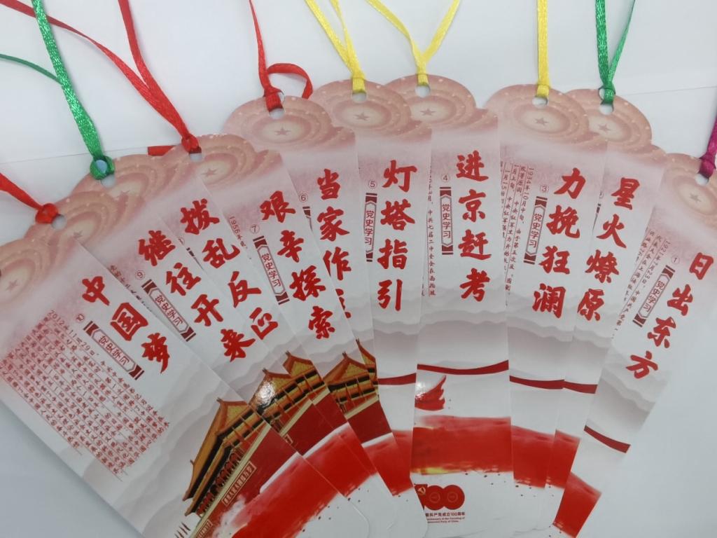 “为人民服务”“一身正气立身从教,两袖清风以德育人”“德才兼备,知行合一”……一条条廉言警句通过书签这个载体给广大教职工在这炎炎夏日送去缕缕清风。书签正面以“廉言警句”为主题,配以学校建筑手绘图片为背景;背面以红色为主色调,以百年党史的十个关键阶段为主题。这“廉”味十足,内容饱满的书签,可以放在办公桌上,夹在笔记本、书籍里,使广大教职工在潜移默化中学习党史,接受教育,成为教职工身旁的“警示牌”。廉政书签主题鲜明、通俗易懂、图文并茂,一行行警示的语句,提醒广大教职工在工作中严格按规矩办事,守住拒腐防线。