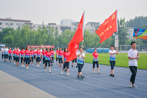 在运动会入场式中,国旗班执国旗入场,庄严肃穆;校旗入场环节由上届运动嘉年华前三名获奖单位代表李鸿耀、雷晓锋、吴鹏程以及本届竞赛承办单位代表宋西镇担任执旗手,以表彰各单位在丰富教职工体育文化活动上的示范引领作用;三十四个方阵各显其能,奉献了一场视觉盛宴,场面轻松诙谐,热烈祥和,让人们看到了广大教职工充满活力的一面,也感受到各个单位的融洽、团结、积极向上的精神风貌。