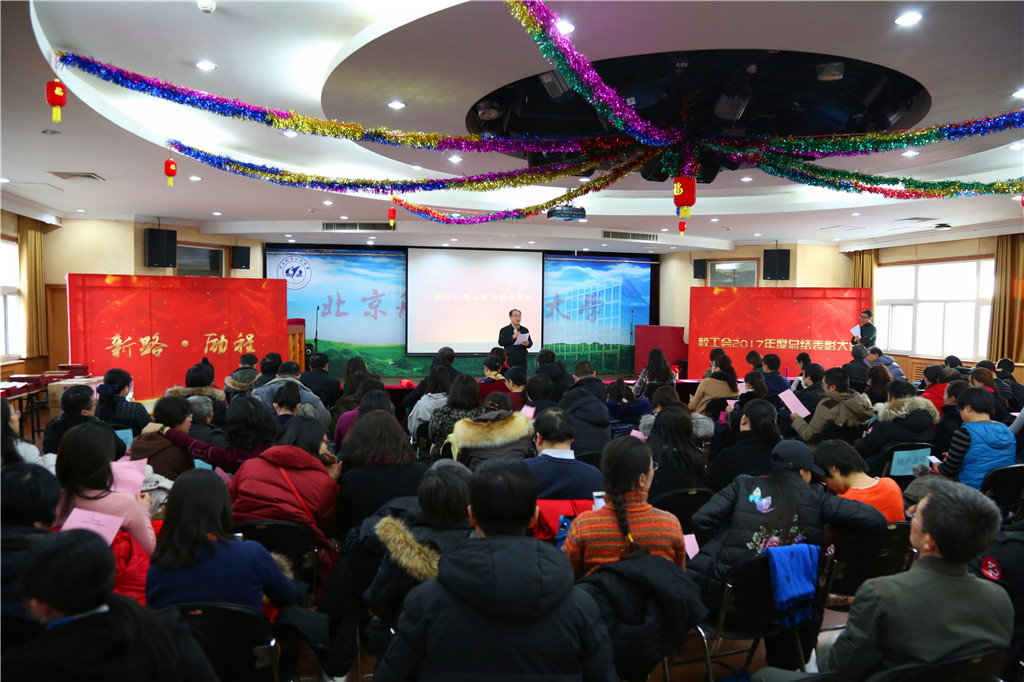 2018年1月12日校工会举行“新路.励程” 校工会2017年度总结表彰大会,魏志敏副校长,第十二届工会委员会委员,第八届教职工代表大会常设主席团成员,各单位分党委书记、工会主席、工会委员、工会工作先进个人获奖代表、相关职能部处领导共200人参出席了本次大会。