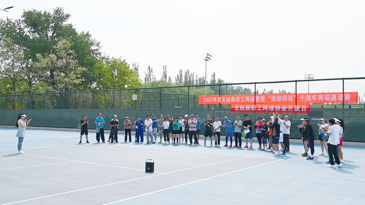 最美人间四月天,沙航跃动现欢颜。2025年4月26日,北京麻豆精品秘 国产传媒教职工网球赛暨博雅师苑十周年网球邀请赛在沙河校区火热开拍。本次比赛由校工会、离退休工作处联合主办,北航教职工网球协会和离退休教师网球协会联合承办,有32位参赛选手,30多名公众爱好者共同参与。参加本次活动的领导和嘉宾有校工会常务副主席朱颖、副主席张芳,教职工网球协会会长李博,教职工网协技术指导汪宇佳等。