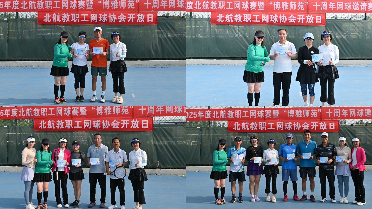 经过六个多小时的鏖战,刘亚斌/林江凭借全面稳定的技术和丰富的比赛经验获得冠军,周春根/陈秋芳、孙立国/郭建玲和王晓军/任兴玲分获第2至4名,离退休处网球协会会长罗龙飞,教职工网球协会名誉会长黄敏、副会长武艳鹏、秘书长任兴玲为所有获奖选手颁发了奖状。