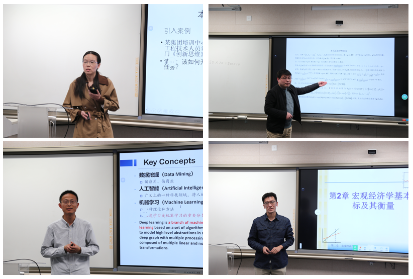 来自我院6个不同专业方向的8位青年教师报名参赛,每位老师的比赛课程均为经管学院为本科、研究生等各层次学生讲授的一线课程,专业覆盖面广、专业特色突出。为了优中选优,更加公平、科学的选拔优秀教学人才,比赛充分考虑了评审专家组成的科学性和合理性,包括多位北京市教学名师、优秀主讲教师、思政名师、校教学督导组成员。7位评委就参赛教师的教学设计和教学展示进行现场打分。比赛由副院长牟晖主持,二十余位青年教师观摩此次比赛。