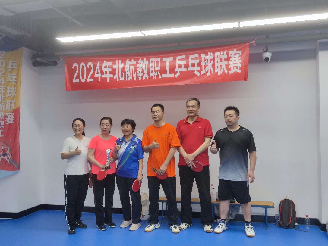 2024年北航教职工乒乓球联赛于4月20日落下帷幕。这次比赛在学院王少萍书记的大力支持和关怀下,在院工会李清东主席及其郑建英、杨凌宇等工会委员们的精心组织下,参赛运动员团结协作,顽强拼搏,最终取得了佳绩。我院代表队在本次联赛团体赛中,连续击败另两个小组第一,挺进决赛,并最终获得了团体亚军。个人赛中吴静老师冲入四强,张可欣、佟子昂进入八强。可喜可贺。