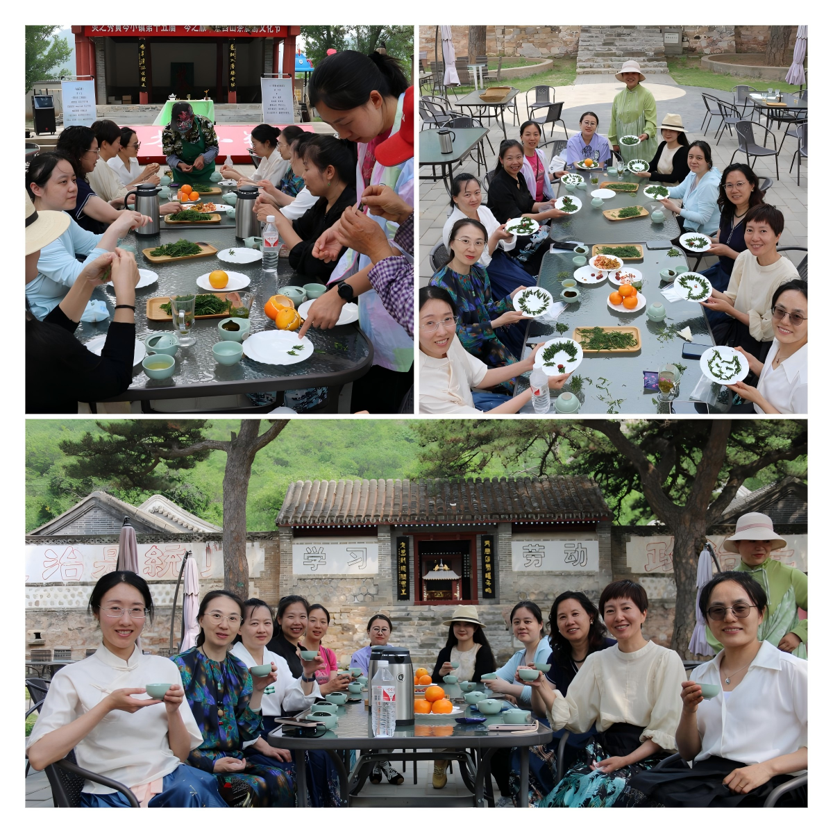 活动从学院老师们走进黄芩茶非遗工坊开始北京灵之秀大村山茶种植专业合作社理事长张建民带领团队结合采茶小院的陈列,为大家介绍了古法制茶技艺。详细了解了开汤冲泡出汤等鉴茶步骤之后,老师们更加体会到小小杯中流转的不仅是茶叶,更是千年茶文化的积淀。随后的登山采茶环节张建民老师带领大家辨识黄芩、柴胡等中草药,科普茶文化与中医药的共生关系,老师们手持茶篮、头戴草帽,于簇簇黄芩间采下五月新绿的嫩芽儿,在实践中体悟茶文化的魅力